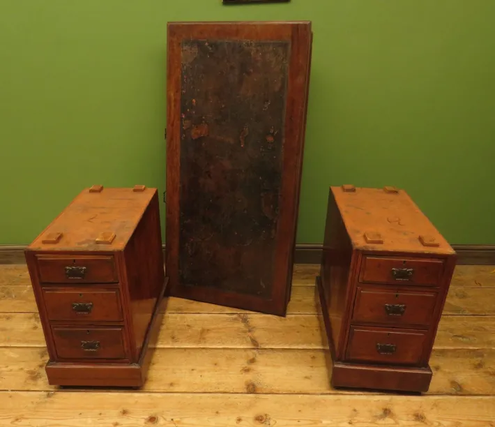 | Restoration and Damage Details | Heavy signs of use, Patina consistent with age and use, The drawer interiors have various ink stains etc, there is veneer loss and no key to lock the drawers. |