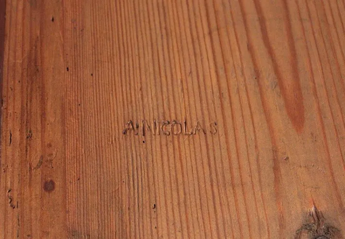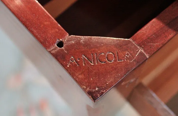 Stamped by A. NICOLA(S) in one of the drawers and on the top of a foot.