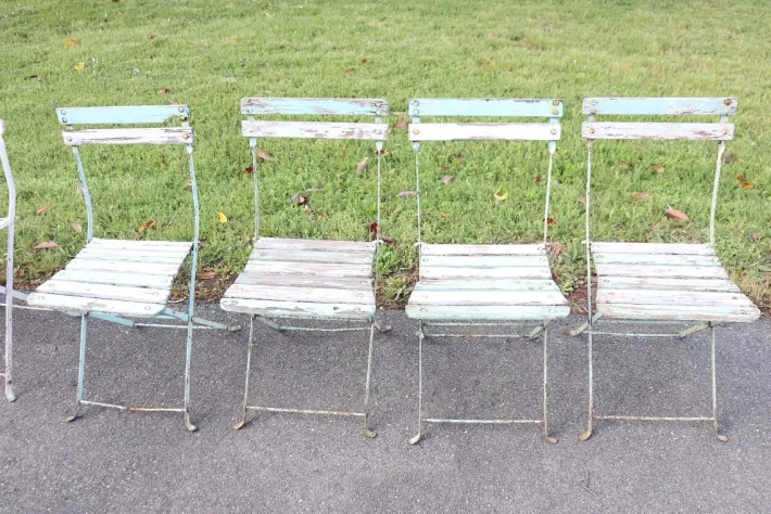 The chairs are not all the same in size, and have different signs of wear please look at all the photos. Please note that the signs of wear are only aesthetic and do not affect the stability. We have decided to present them in their original vintage condition because we believe that this aspect of wear accentuates their retro charm.