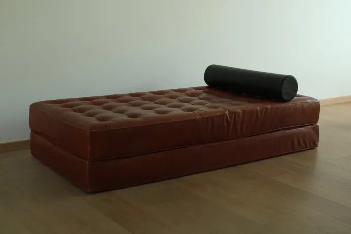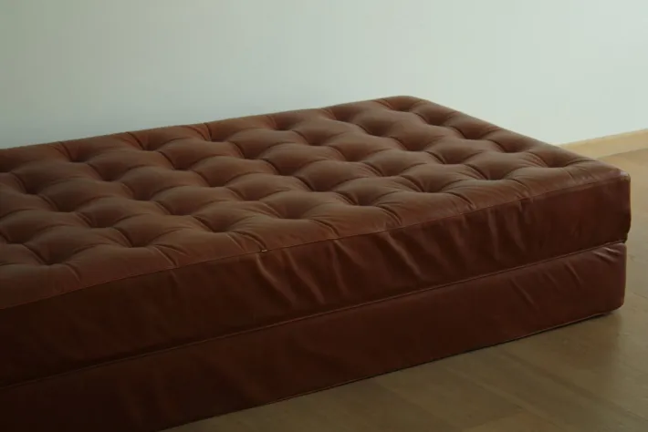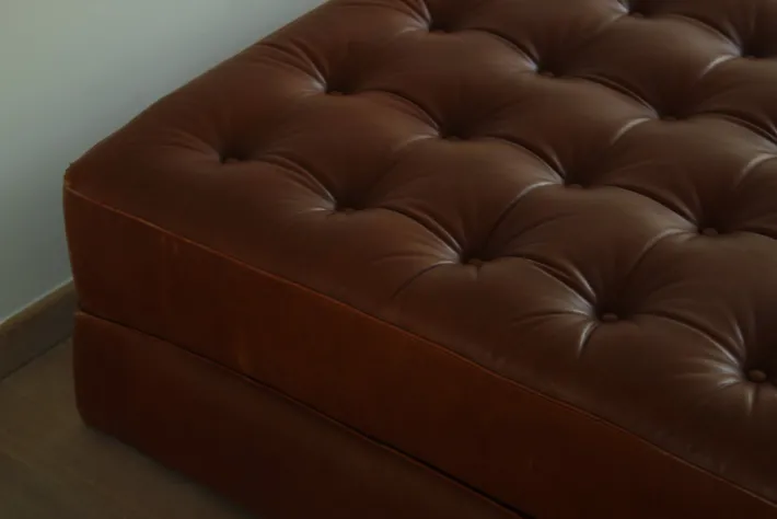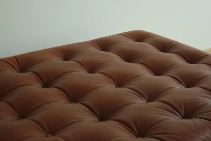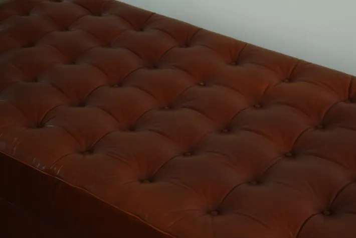 | Restoration and Damage Details | Heavy signs of use, Light wear consistent with age and use, Patina consistent with age and use, Slightly worn to the corners, Several buttons have been replaced, The piping is exposed in some areas |
