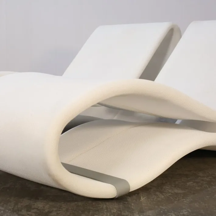 Condition Notes: This set of two Talenti Breez 2.0 Sunbeds by Karim Rachid is in very good condition, with some minor signs of wear. Both sunbeds show some discoloration on the fabric over the frame at the ends. On the first sunbed, there are tiny marks and slight discoloration on the inside of the back piece. The second sunbed has a tiny indent on the bottom left corner of the seat. These imperfections are minimal and do not affect the overall comfort or aesthetic of the sunbeds, which remain in excellent functional condition.