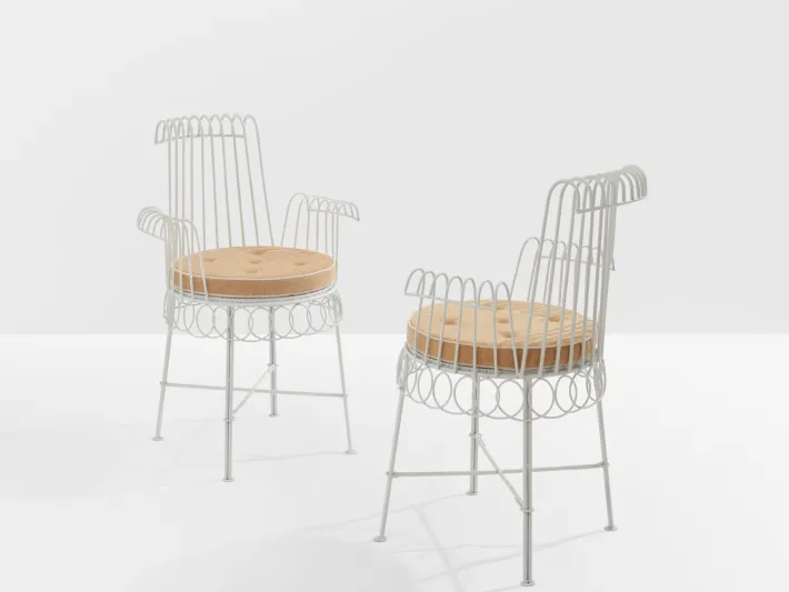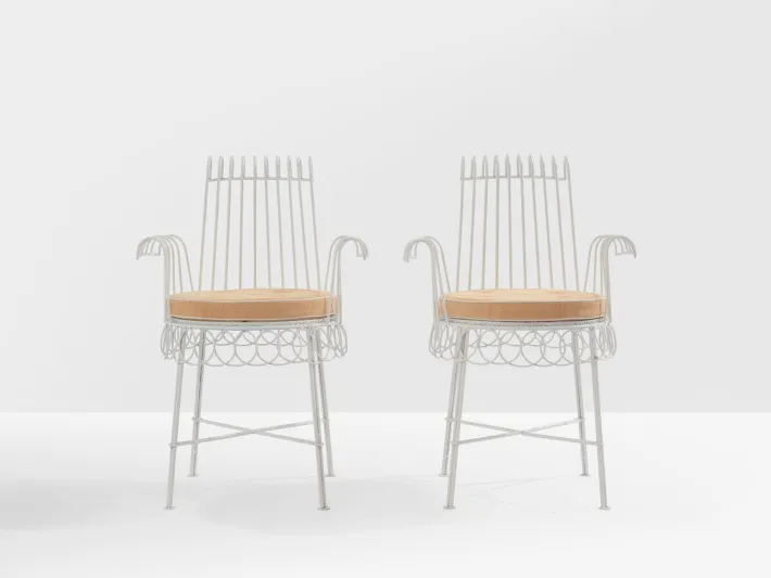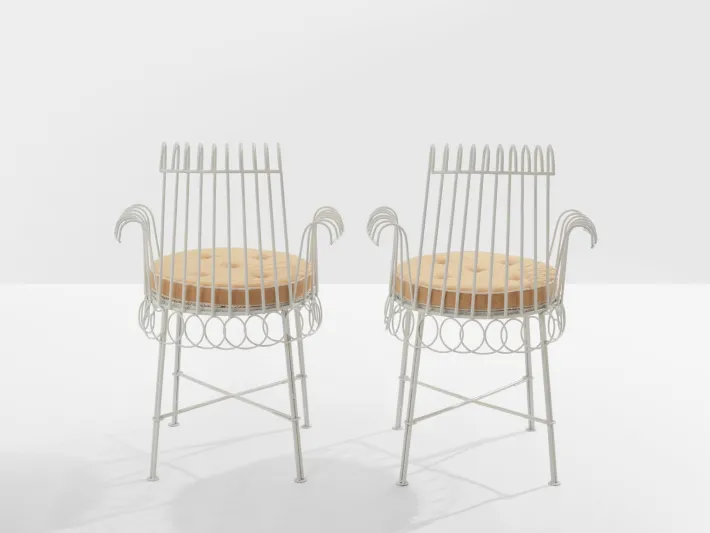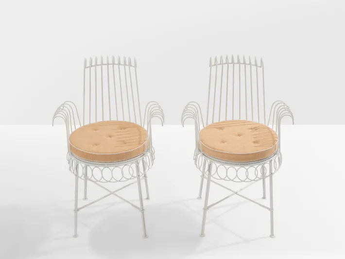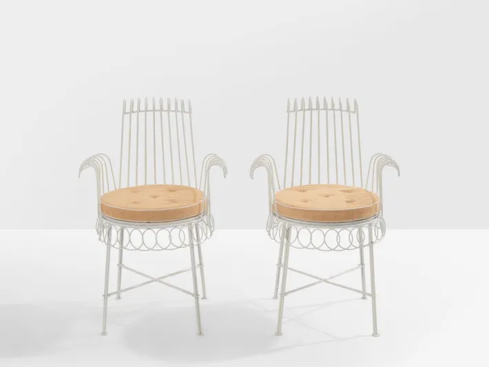 Mathieu Matégot (1910-2001), a renowned Franco-Hungarian designer known for his unique creations, played a central role in the post-war artistic landscape in France. His innovative use of perforated metal, discovered during his captivity in Germany and patented under the evocative name “Rigitulle” in 1952, revolutionized furniture design. Blurring the lines between design and decoration, his pieces reflect a pursuit of functionality characterized by resourcefulness and ingenuity in form-finding. Now reissued, his creations remain design classics, epitomizing the playful elegance of the 1950s.