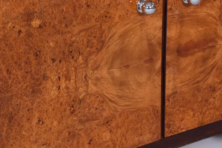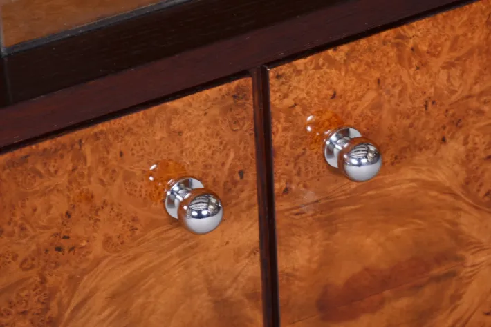 This item features classic Art Deco elements. Art Deco is a style that originated in France in the early 20th century. Its furniture designs are meticulously crafted, usually using exotic woods. Pieces are typically lacquered to give off a dazzling gloss. These eloquently crafted pieces will add visual performance and posh to any interior.