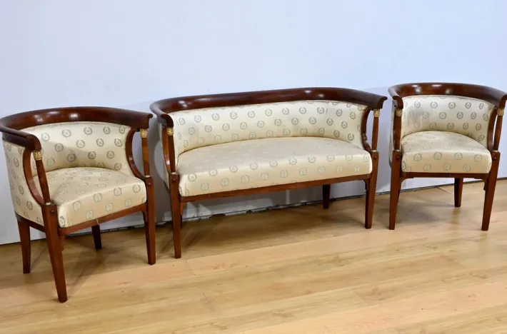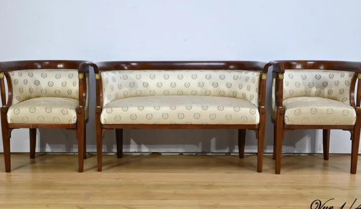This living room set reflects the Empire style, known for its luxury and antique inspiration, and would be a stunning focal point in any classic or contemporary interior looking to incorporate historical elements.