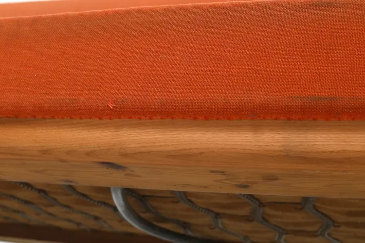 | Restoration and Damage Details | Light wear consistent with age and use, Patina consistent with age and use, Requires reupholstery, Fabric is faded and with some stains and a hole, Recommend reupholstery |