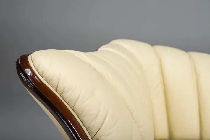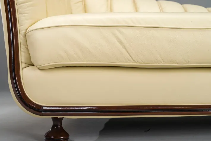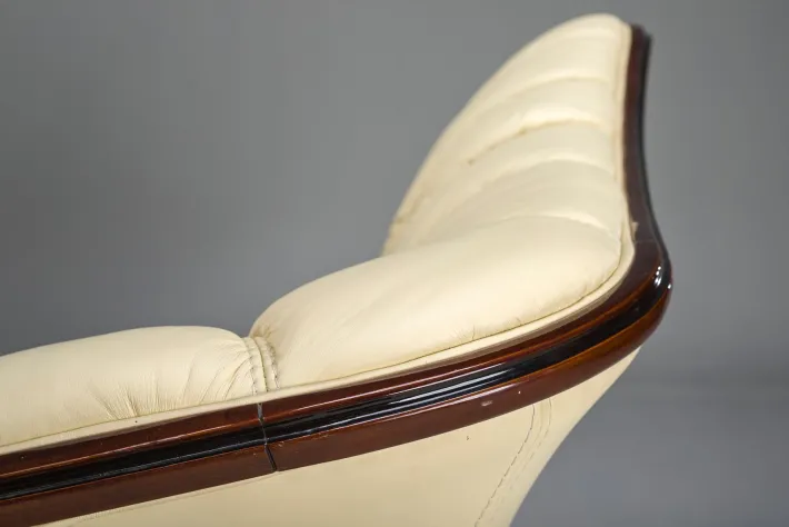 | Restoration and Damage Details | Heavy signs of use, Surface has been polished, The leather has been cleaned, The wood refreshed, There are slight traces of material damage visible on the cushion, The leather is soft and pleasant to the touch |