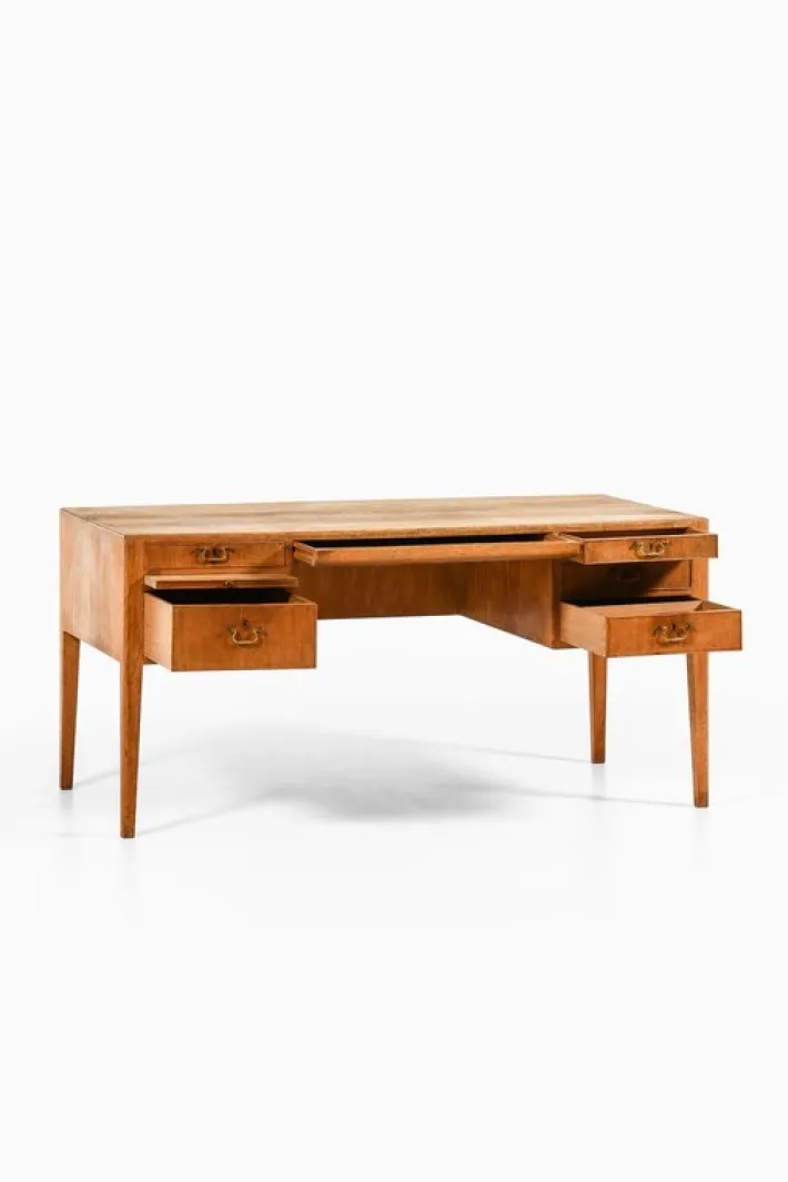 Additional Information: Material: Oak, brass Style: Mid century, Scandinavian Produced in Denmark Dimensions (W x D x H): 150 x 75 x 72.5 cm