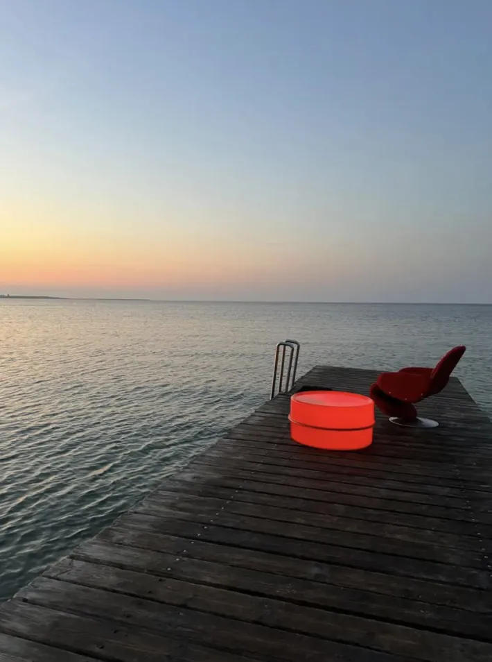 Made from red plastic this iconic coffee or rather large side table is a stunning design from one of Denmarks most spectacular architects.