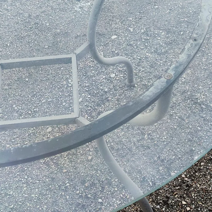CATEGORY table STYLE vintage IKEA DIMENSIONS: HEIGHT cm 74.5 DIAMETER cm 110 COLOR: black gray MATERIAL: metal plastic glass CONDITION: Good vintage item, fully functional but shows signs of wear such as scratches, dents, material defects and repairs
