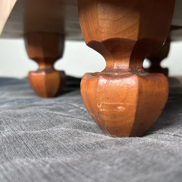 This solid wood game board is supported by elegantly shaped legs that emphasize the craftsmanship of the piece.