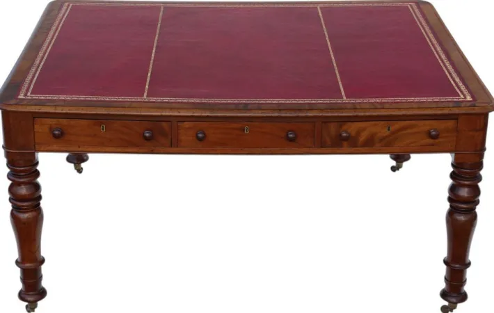 A brilliant opportunity to acquire a large 19th-century Georgian partners desk, combining fine quality, decorative presence, and practical function.