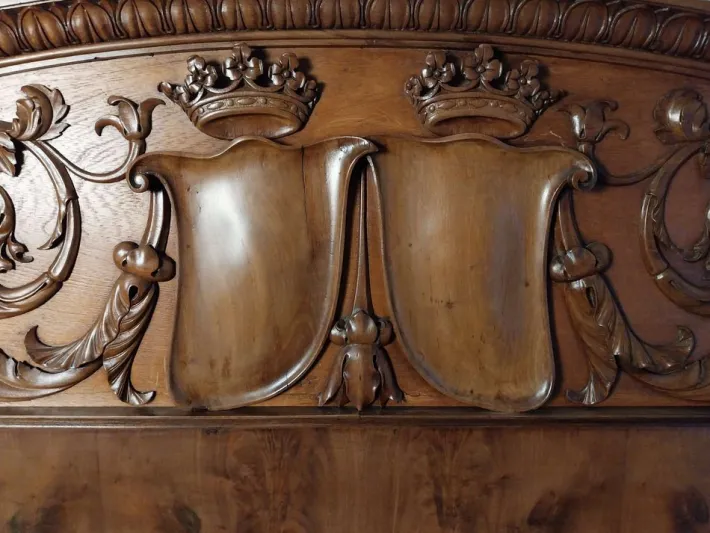 Two -squares bed in excellent condition considered the era, only a few slight finishing defects due to use and visible in the photo. Structurally in excellent condition and equipped with its original hardware.