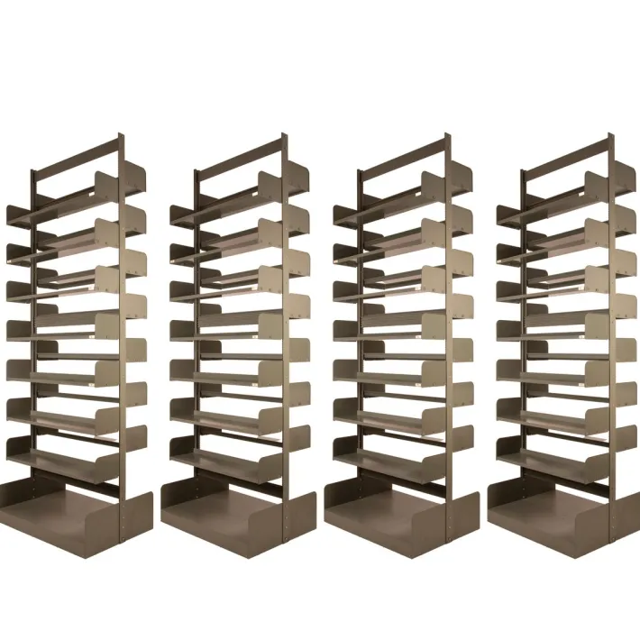 Distinctive Design: 3-meter-high double-sided structure with 7 shelves per side (14 shelves in total), solid base, adjustable and sliding shelves, rigorous and minimalist architectural lines