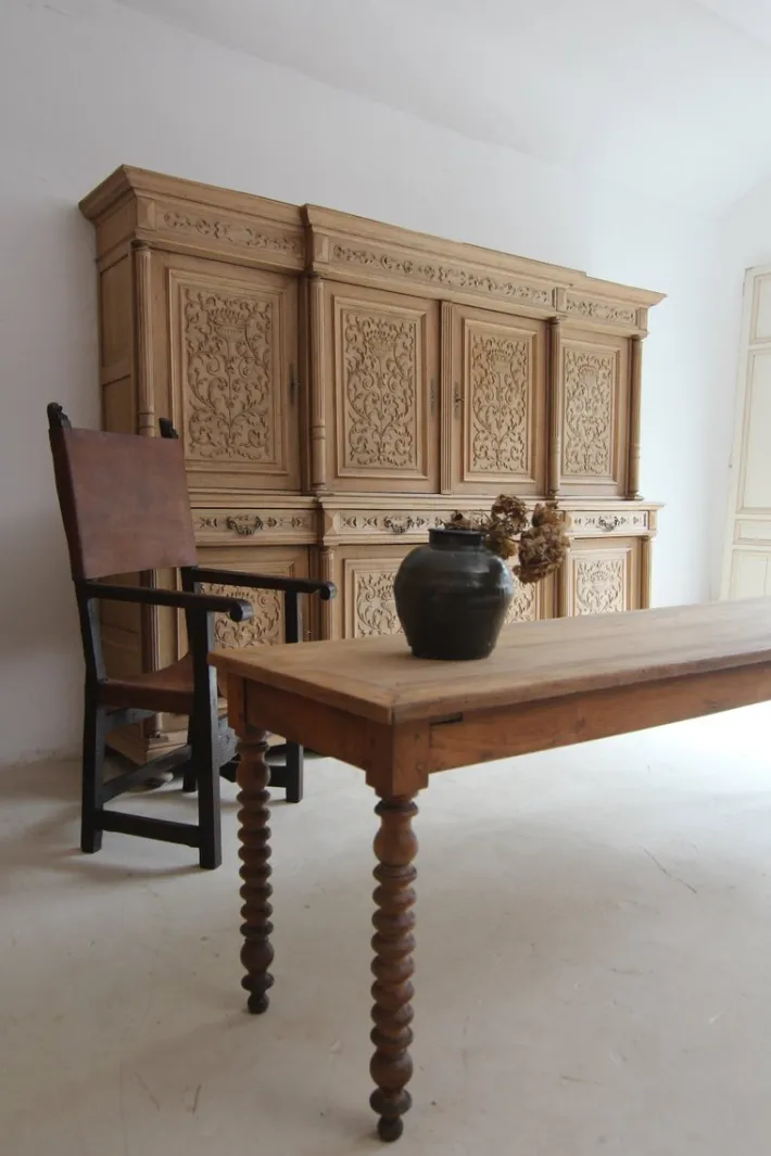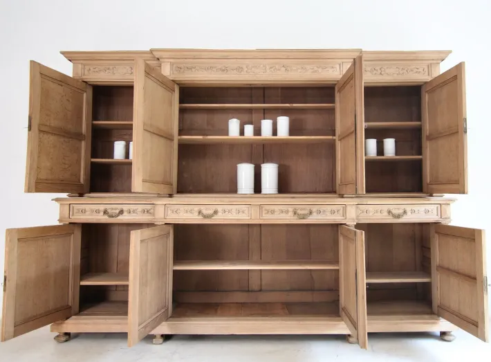 | Restoration and Damage Details | Light wear consistent with age and use, Partially restored, Surface has been refinished, Minor damage, Three missing shelves have been added, The old dark surface coating has been removed from the wood and bleached, |