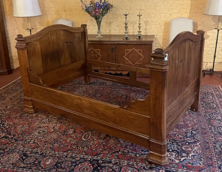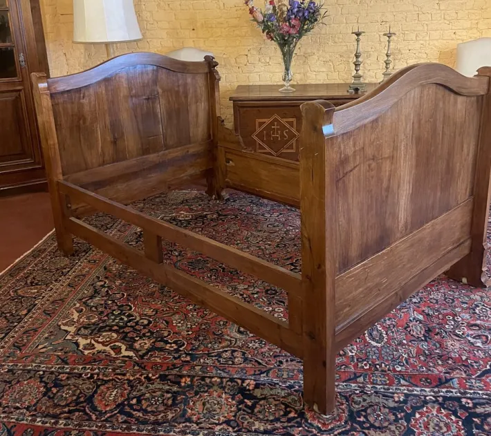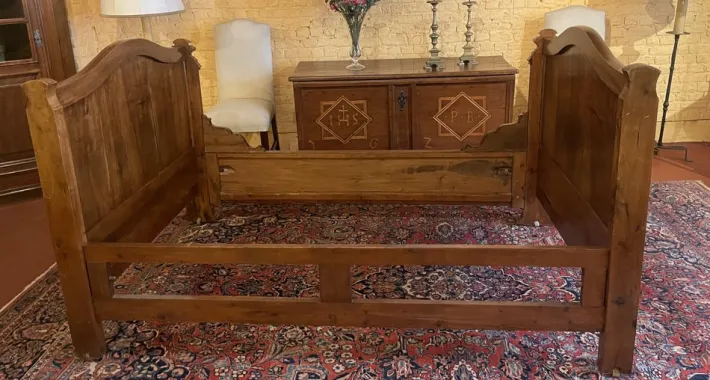 Very elegant bed with a beautiful patina and beautiful molding work on its two uprights