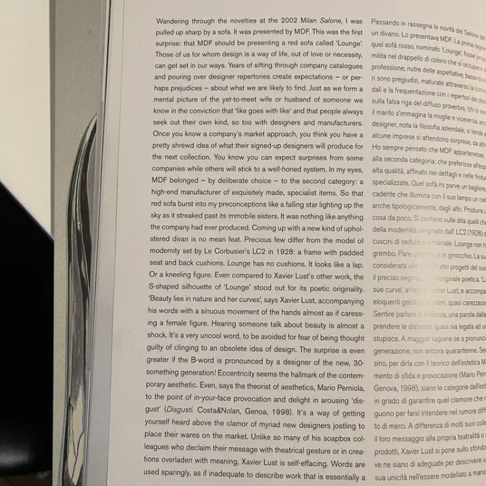 Artist / Designer: Xavier Lust (Bruges 1969 – ). Issuer / Manufacturer: MDF Italia Milano. Mark / Label: Yes. Period: 21th Century, 2000 to 2002 Country of Origin: Belgium. Dimensions (H x W x D): 61 x 200 x 80 cm. Weight: 30 Kg. Condition: Excellent. Style: Design Modernism / Minimalism. Materials: Metal / Felt covering.