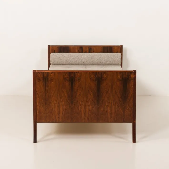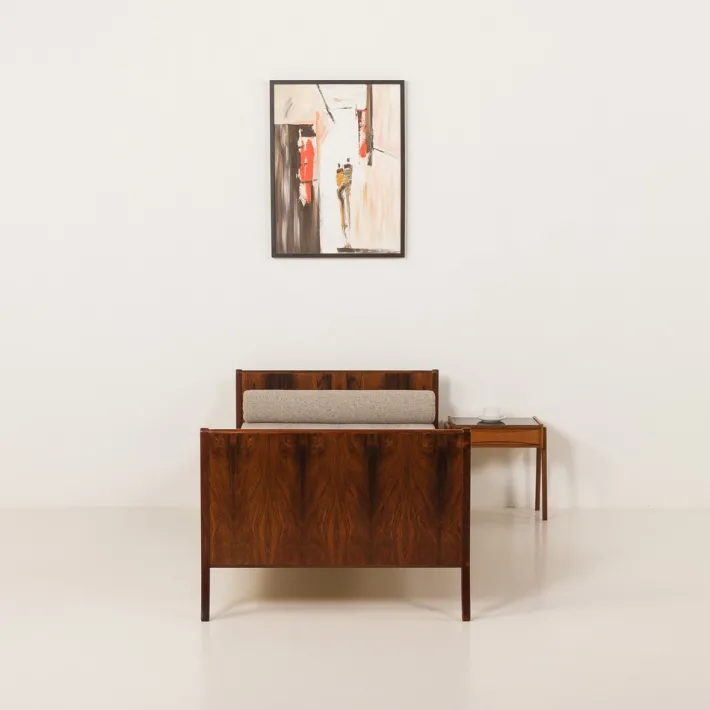 The daybed is in fantastic condition after renovation. The original wood frame has been cleaned and treated with professional compounds. The new foam inside provide contemporary comfort in vintage piece.