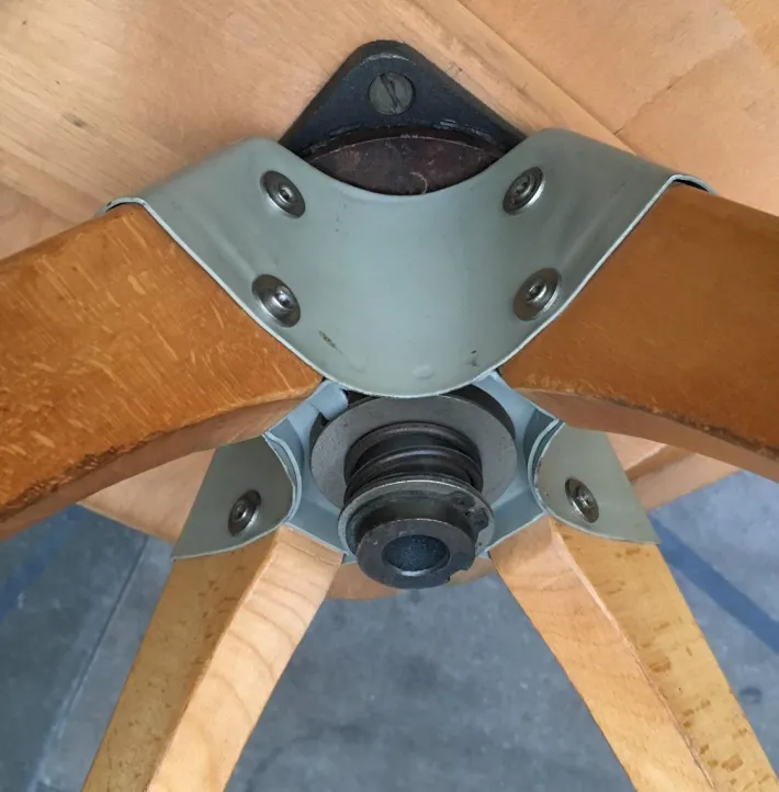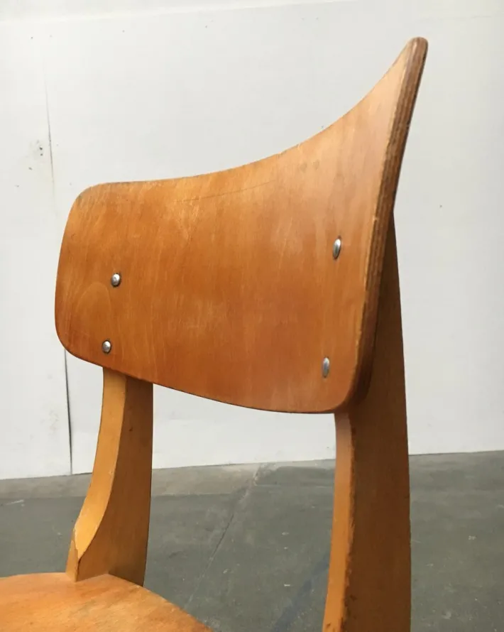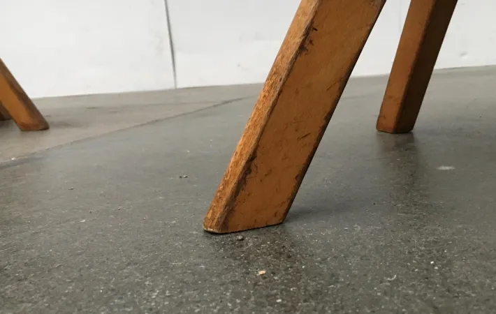 A well-known design from schools and other educational institutions. Simple, functional and sturdy. These chairs bear a green coding in the form of a dot, which, as far as I remember, refers to the size of the chair. The chairs still have a 4-star base, indicating an older production date. Nowadays, chairs are also produced only with 5-star feet for safety reasons. Of course, both chairs are marked with a Casala brand stamp as follows: Casala X /72, III from 146-160 cm.