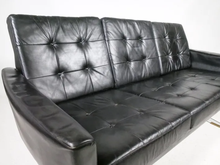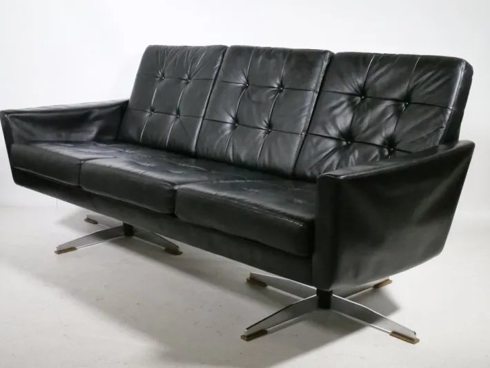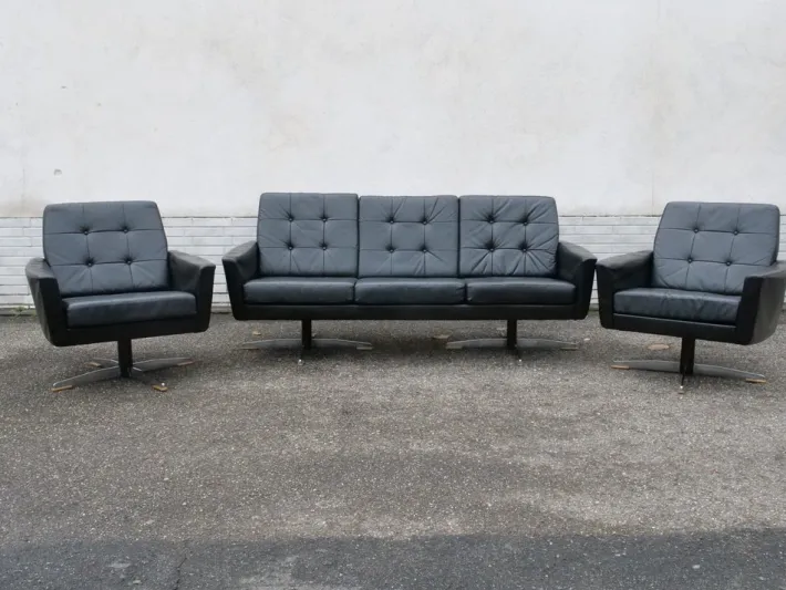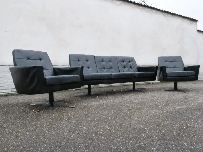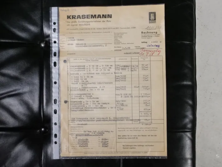 The garnish was produced in 1968 with great care and craftsmanship by the Krasemann company. Original purchase receipt available! The attention to detail is shown in the quality of the seams, the construction and processing. The seat shell of the armchair is mounted on a 360 -degree rotating star foot made of chrome -plated steel.