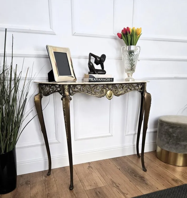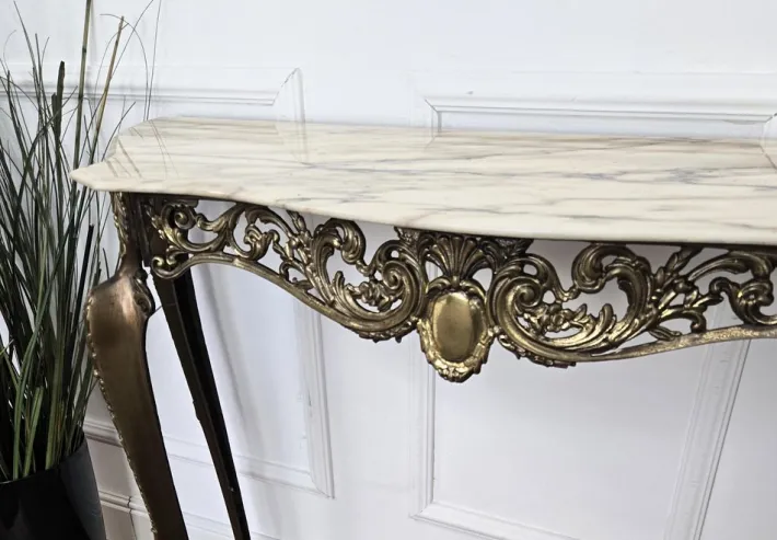 | Restoration and Damage Details | Wear consistent with age and use. Great structural and material conditions, with patina of time on the brass part and good marble top conditions, no chipping, just slightly used coating. |