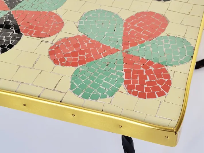 Flower table with a floral motif, small-scale mosaic made of Formica.