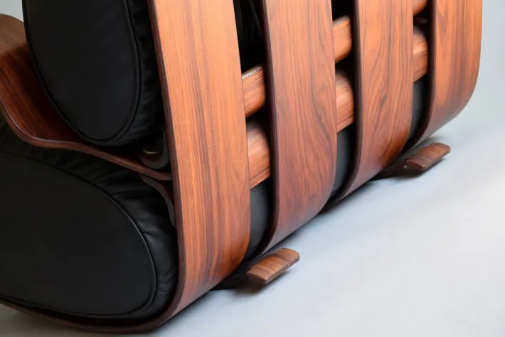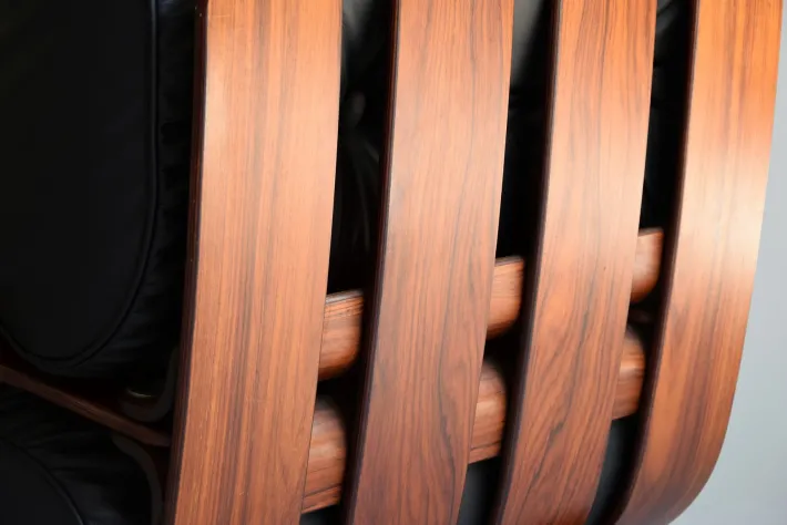 1. Exquisite Craftsmanship: The frame is sculpted from durable plywood with a rich Jatoba veneer finish, celebrating the warmth and natural beauty of fine wood. Its curved structure exudes sophistication and artistry, reminiscent of mid-century icons like the Eames Lounge Chair.