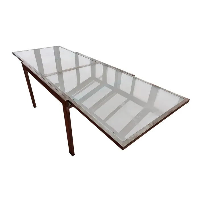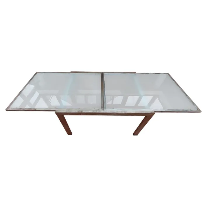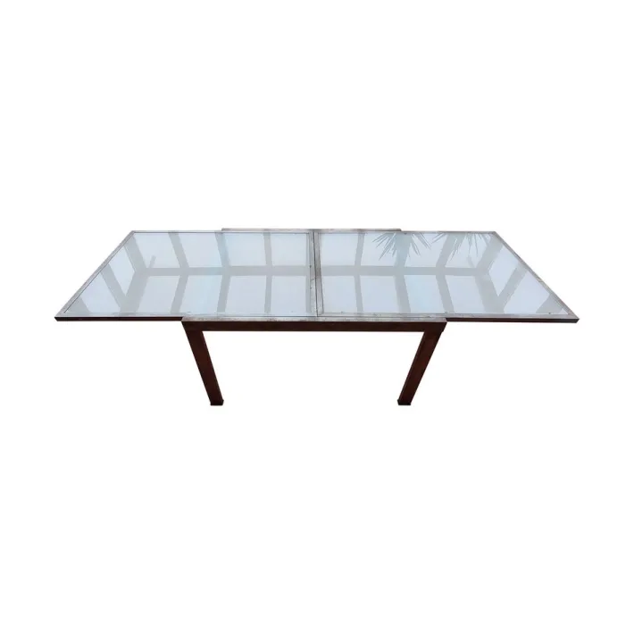 The table’s extendable plates are seamlessly integrated into the frame, and can be easily pulled out to create additional seating space. The industrial design of the table exudes a clean and minimalist aesthetic, making it perfect for any modern space. Whether you’re looking to host a large dinner party or just want to add a touch of midcentury charm to your space, our extendable table is the perfect choice.