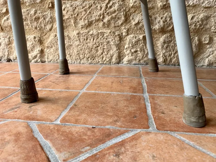 All leg tips are original, present and made of rubber, with signs of age and usage commensurate with time.