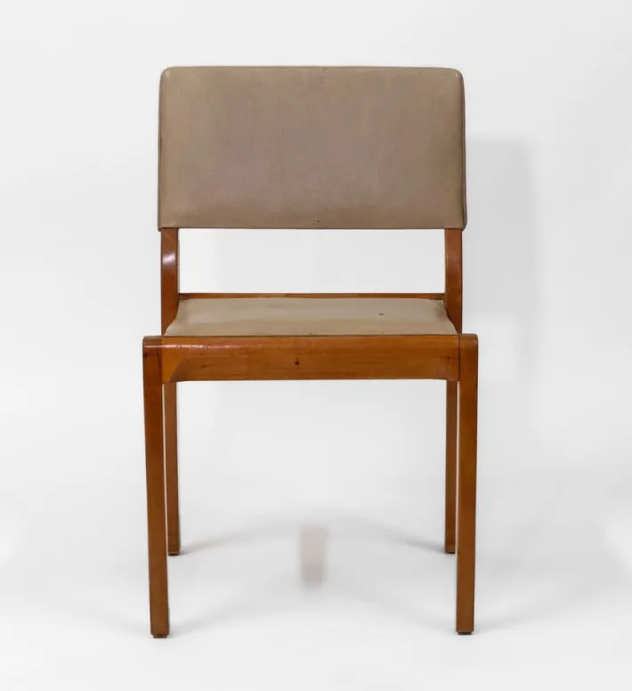 A variant leather seated chair like this one is in the collection of the Sainsbury Centre in Norwich.