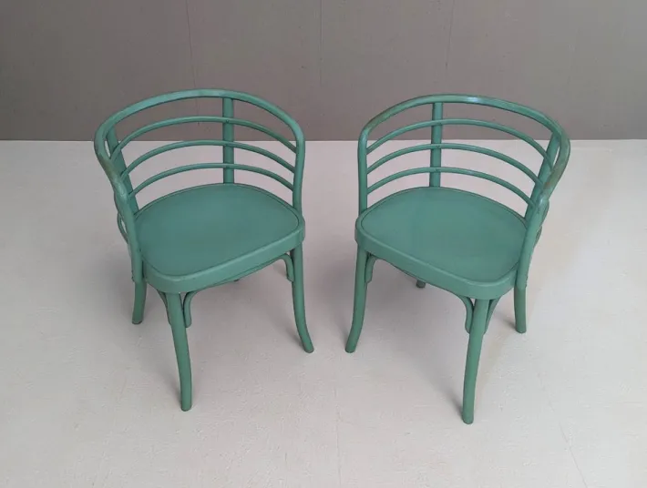 The set is preserved in good original condition, with some signs of age: scratches to the lacquer, occasional fading of color — especially on the chair armrests — and a patina that speaks to its authenticity. These are not flaws, but part of the object’s narrative. Structurally sound.