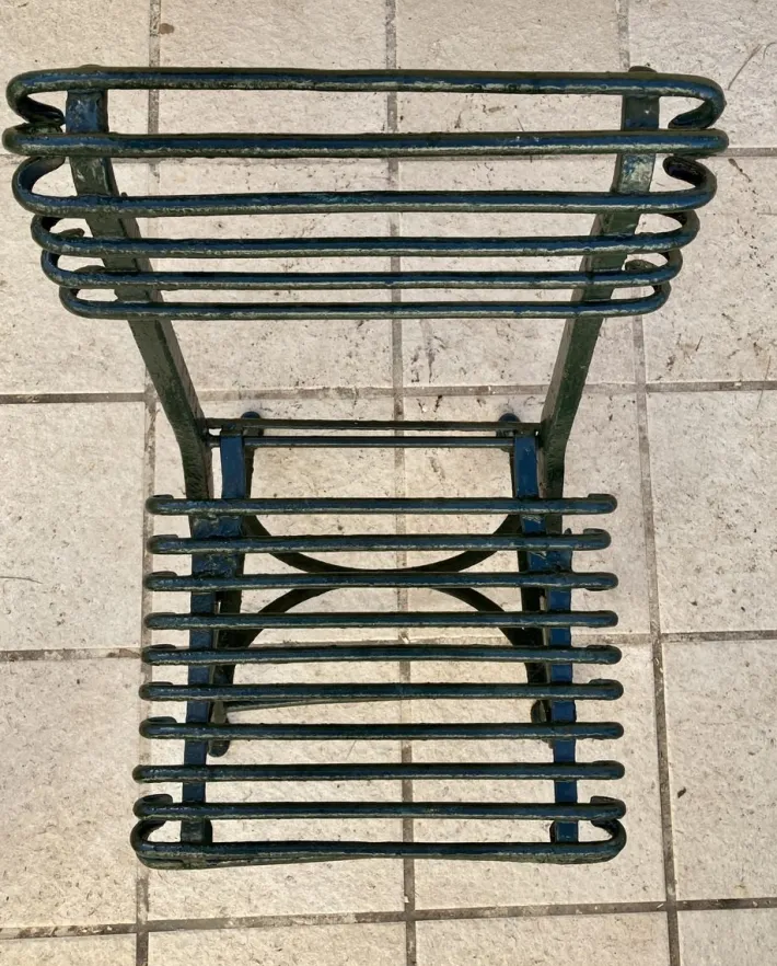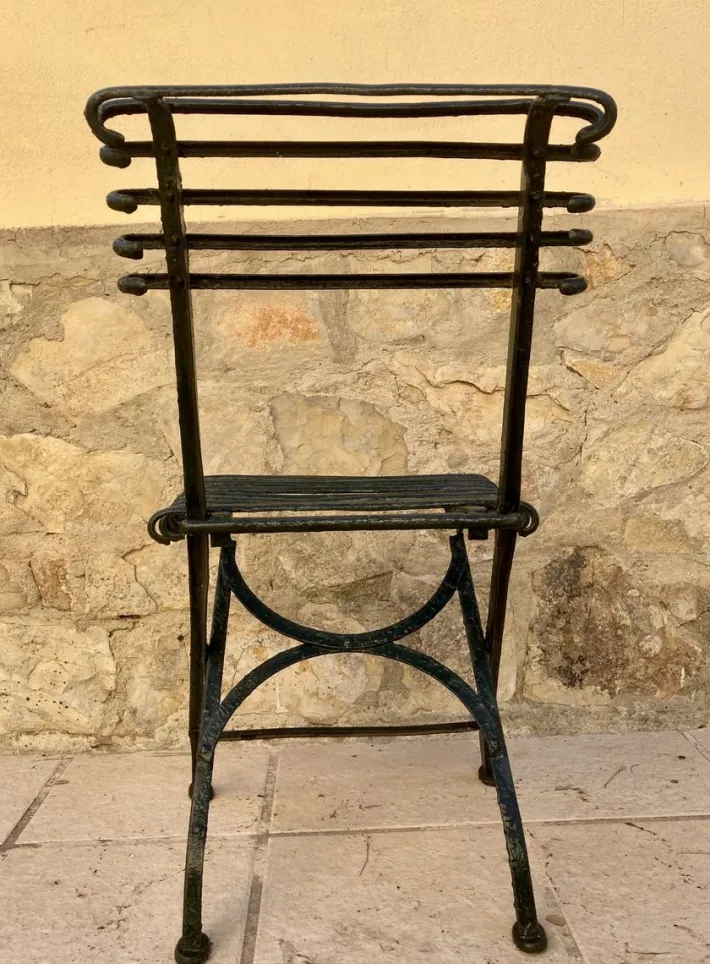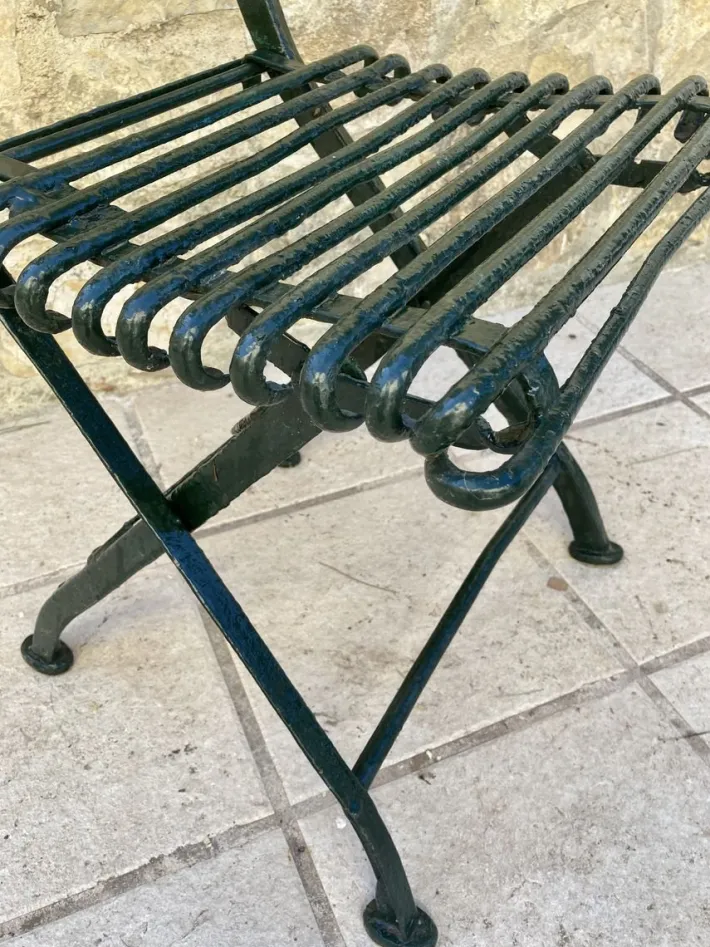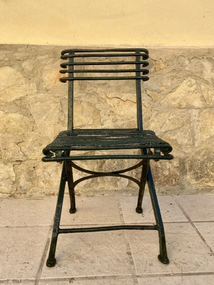 The chair was repainted in the recent past with paint similar to the original in green. The chair can be folded for packing