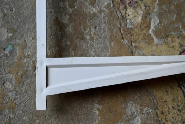 The String shelf is wall-mounted. Its vintage, seventies design is particularly pop and functional. The three uprights are made of white ABS plastic. The four shelves are burgundy red. The shelf is signed on the uprights. Some signs of wear are noted.