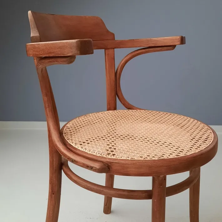 | Restoration and Damage Details | Patina consistent with age and use, New handwoven rattan seat |