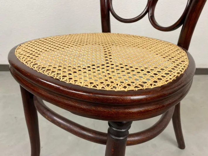 | Restoration and Damage Details | Refinished, New handmade rattan sear, Minor losses |