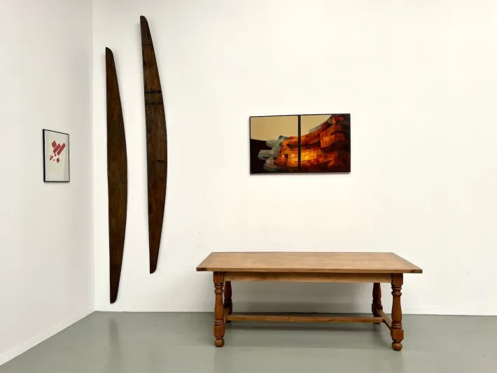 Its classic design, with its elegantly crafted legs and wide top, evokes the convivial dining room furniture of the 1970s while maintaining a beautiful visual lightness.