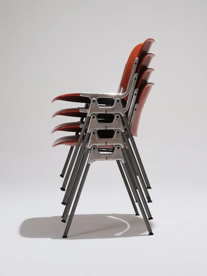 Pamono Orange DSC 106 Stackable Chairs by Giancarlo Piretti for Castelli, 1970s, Set of 4 Best