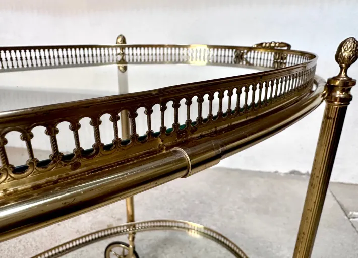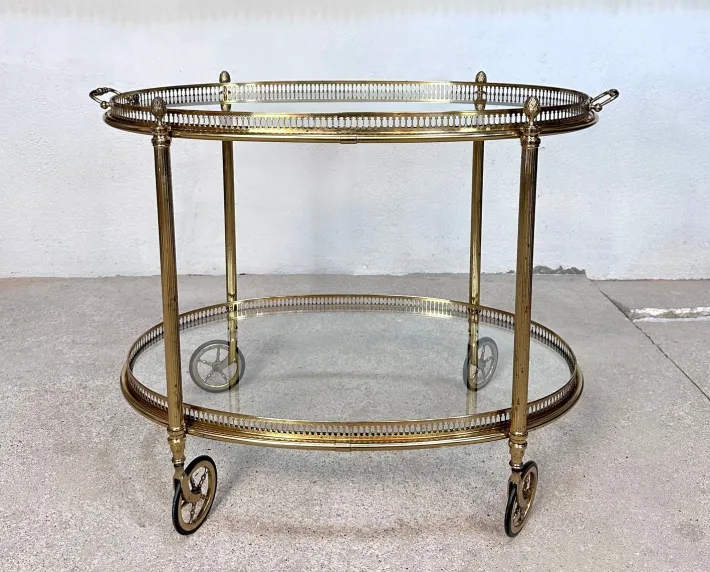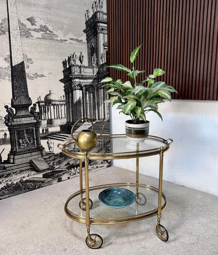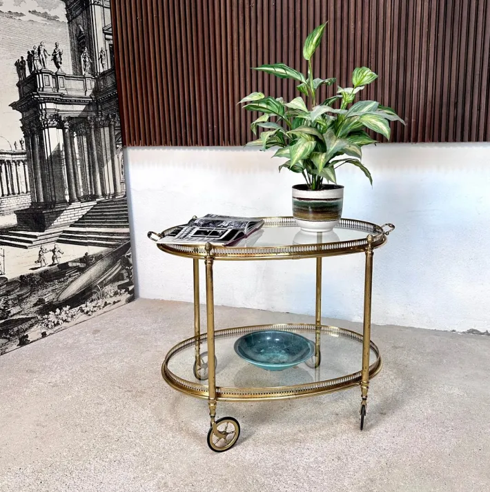 | Restoration and Damage Details | Light wear consistent with age and use, Patina consistent with age and use, Brass metal frame shows material-typical patina, glass Trays with normal minor scratches |