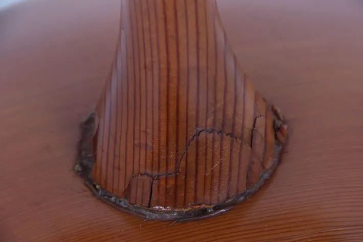 Furniture 3: diameter 25 cm. Height: 22cm. Very worn and clear signs of wear. The furniture is sturdy, however there are cracks in the wood that should be repaired to ensure stability and beauty.