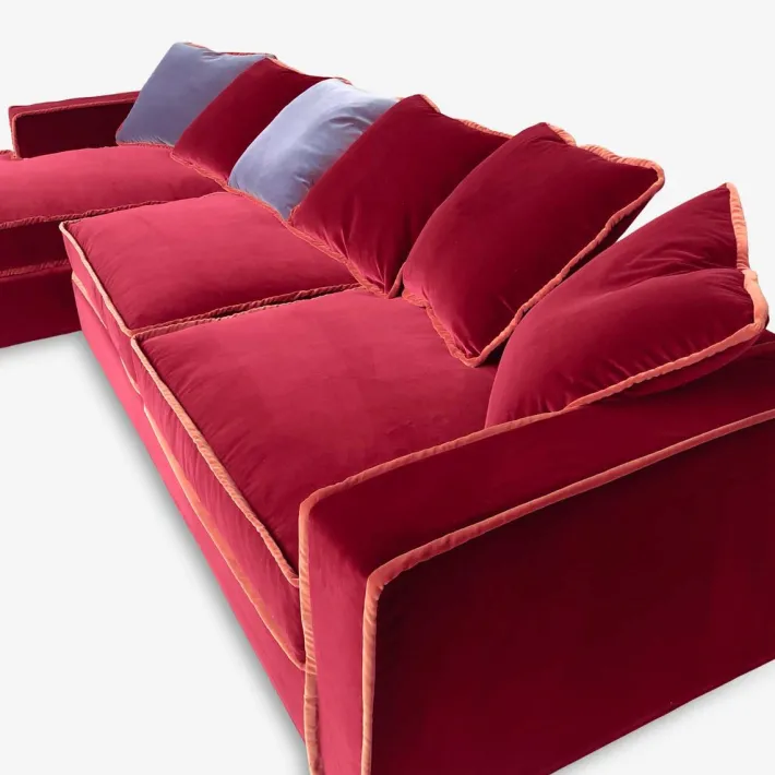Finishing: choice of 100% natural fabrics (linen, cotton velvet, natural mixes), steel and cotton zippers, removable cover.