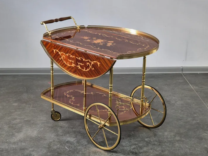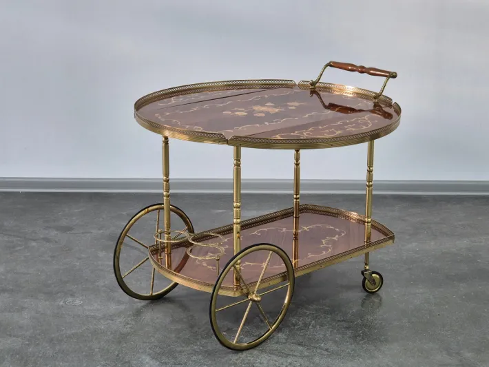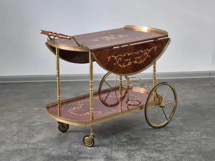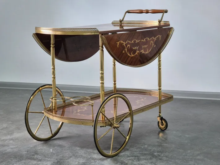 Bar cart in Neoclassical Design – made from fine Woods and Brass.