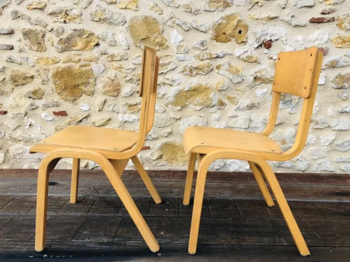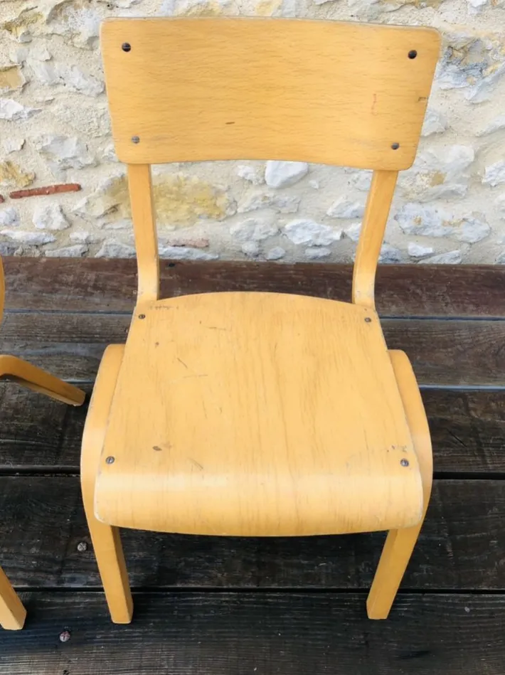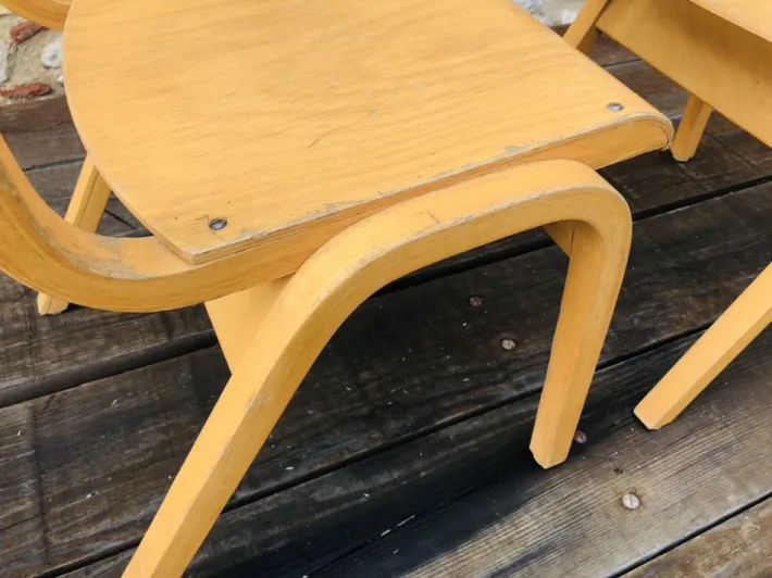 Chairs have wonderful bentwood legs, designed in the the shape of a bow.