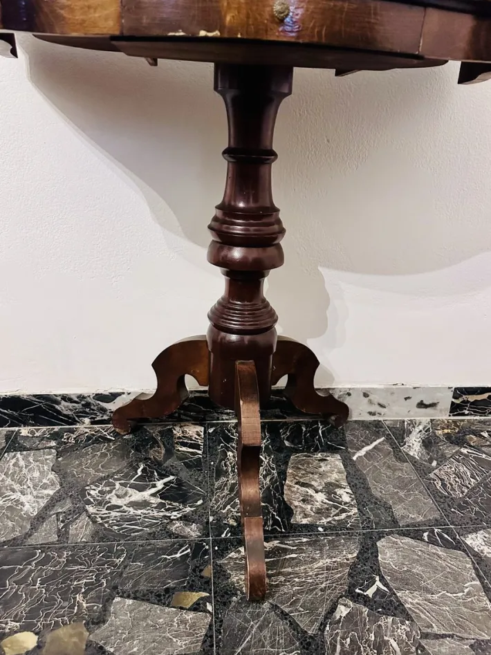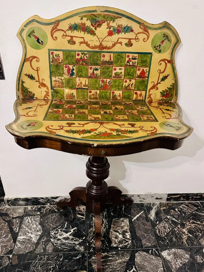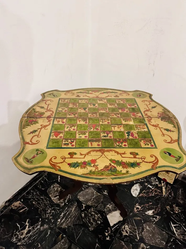 The top, measuring 80 x 80 cm, is hand-painted and houses a beautiful chessboard also painted, ideal for lovers of games and antiques.