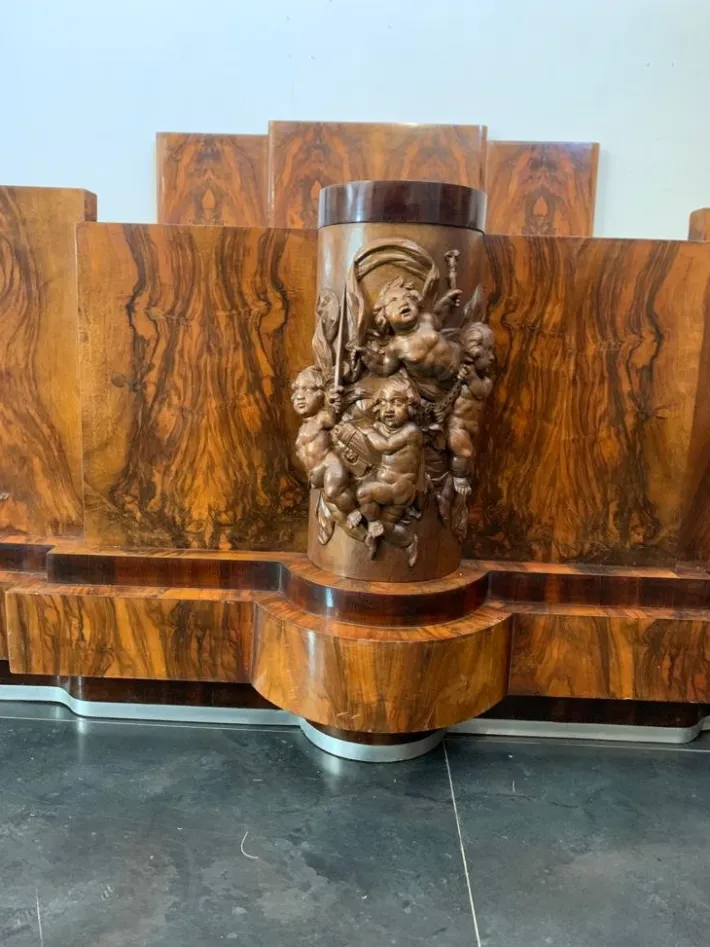 The center stands high relief of allegory of festive putti, masterfully carved.