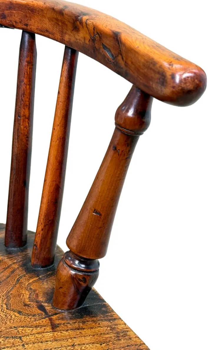 There is evidence of the first windsor chairs in the late 16th century, but they were very much popularised at the very end of the 18th century and early 19th century onwards. Always constructed from woods which were freely available in the UK, allowing for constant, plentiful supply they are most often found in ash and elm, sometimes fruitwood and least often in yew wood. Therefore the yew wood examples are nearly always the most sought after and best quality.