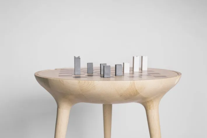 The double-sided table top can turn a chess table into a coffee or storage table. The appearance of the board can be designed individually.