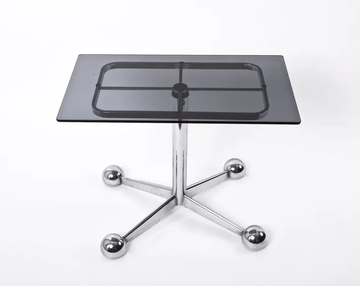 – Made of chrome and smoked glass