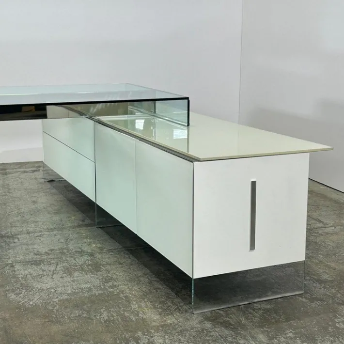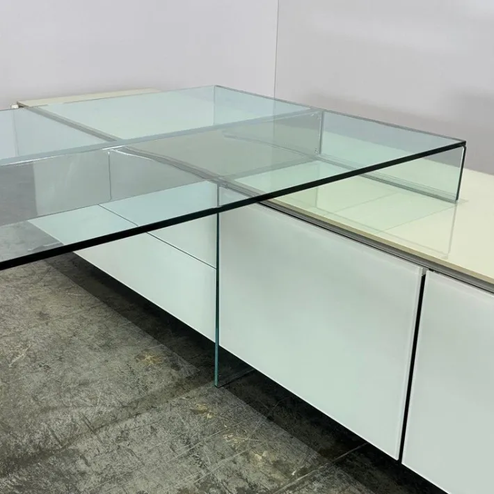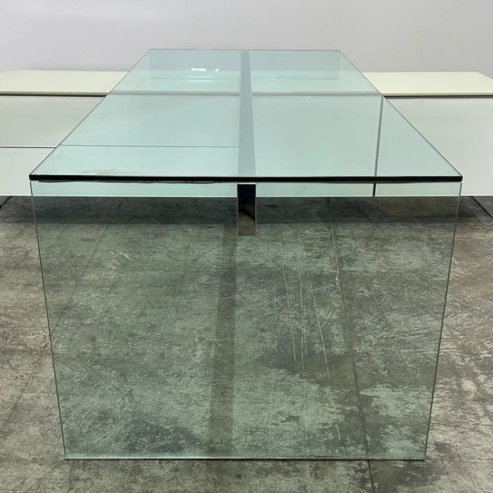 Dimension Data: Height: 75 cm Width: 244 cm Depth: 228 cm Condition Notes: The glass top has a few light scratches from use but overall the table is in good condition.