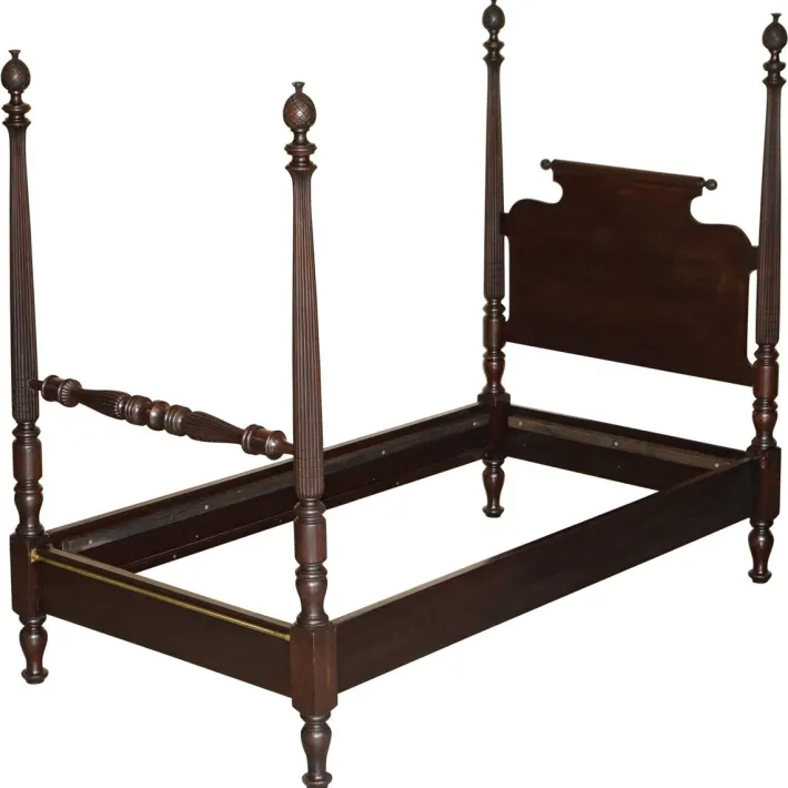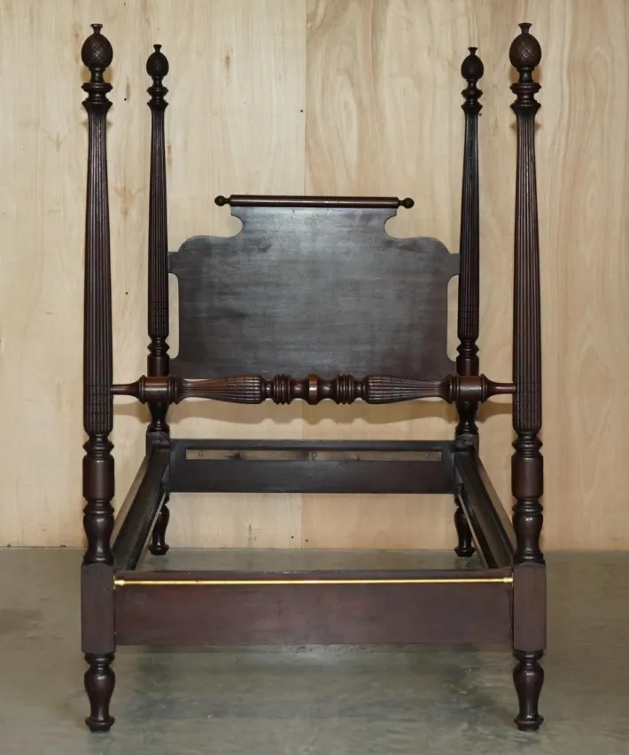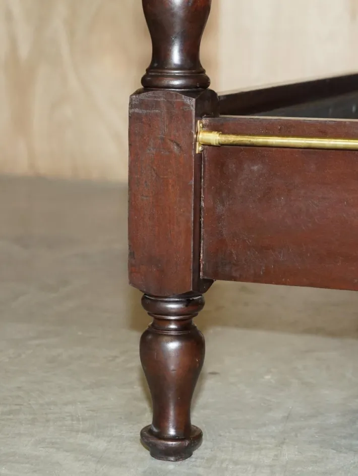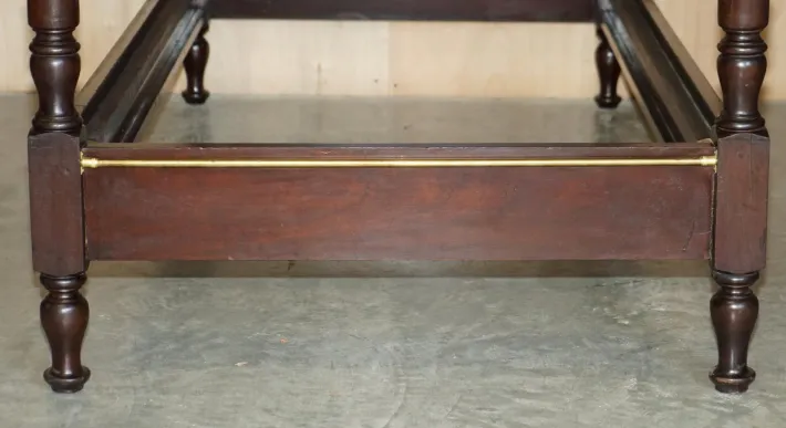 The woodwork has been cleaned waxed and polished, it will have the original patina and so on throughout, we have not refinished it specifically to keep the period patina. Please note this sale only includes what’s pictured, there’s no mattress or divan base.