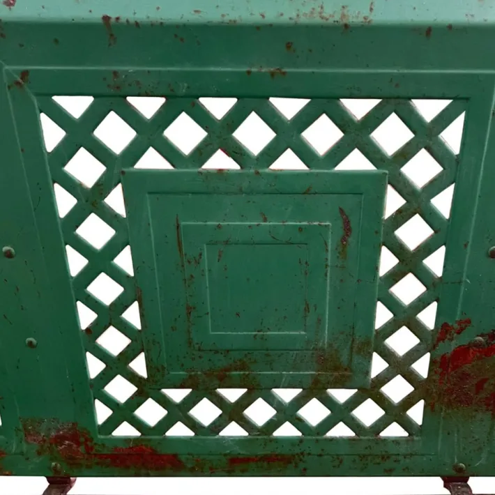 The original green paint has faded and worn as you would expect with use. It can be repainted if desired.