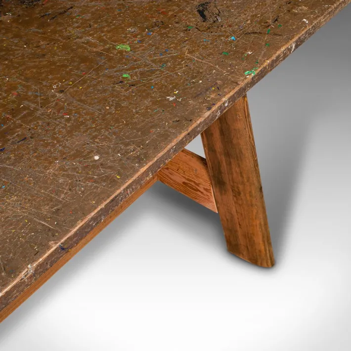 Lovingly patinated with remnants of oils and acrylics, comfortably seating 6